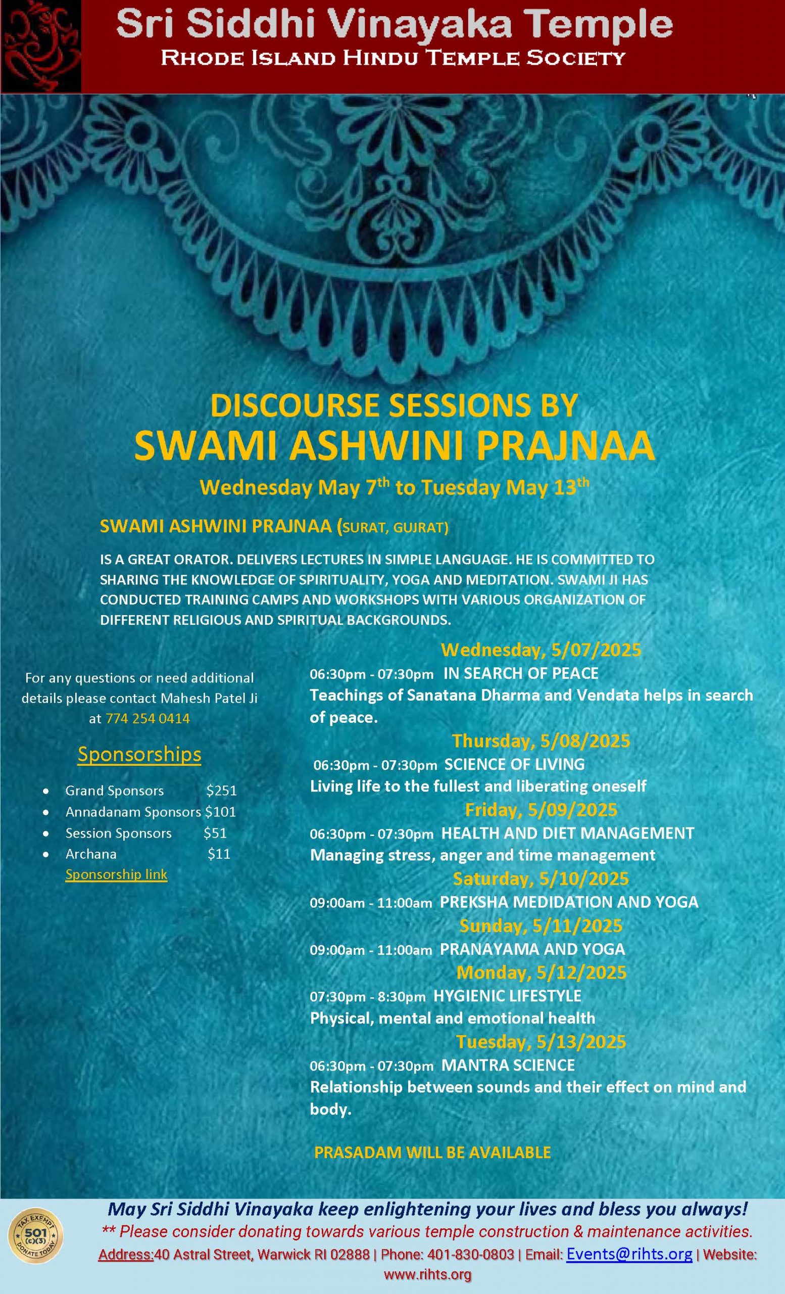 Starting March 2021, RIHTS launched “Sponsor A Day”, a fundraising program to help cover the day-to-day maintenance activities at the temple. As a token of appreciation, for a starting donation of $201, a special pooja service in the name of any family member will be performed at the temple along with Nitya Archana everyday for a month. Please click below link for more details.