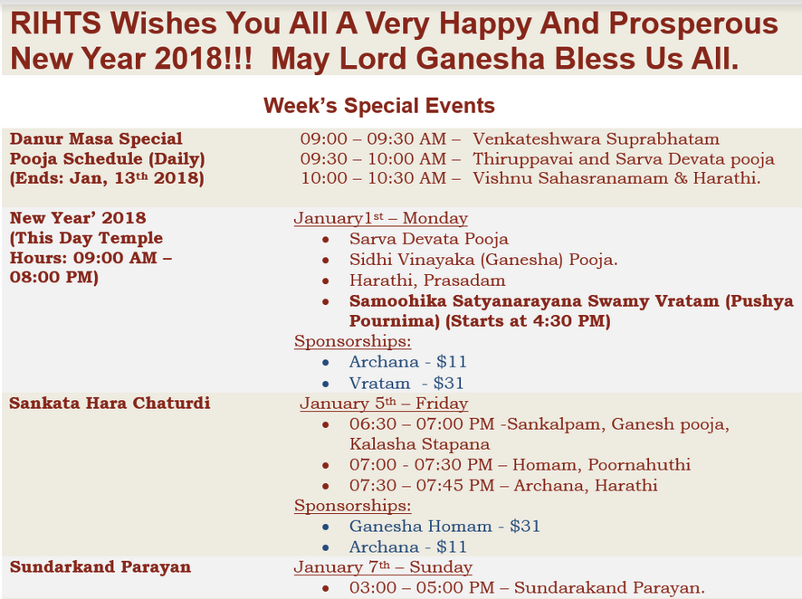 • Temple Events
